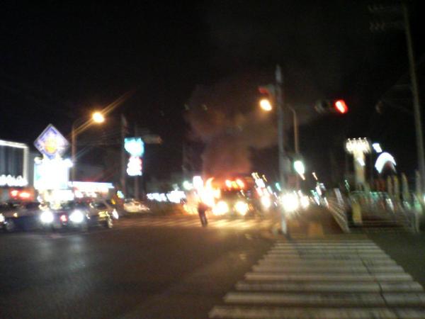 処で昨夜 iyo奥さんとウォーキングしてたら何やら道路のど真ん中で煙が上がってます