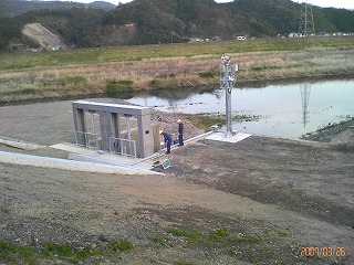 新しい樋門と新しい小屋・それに車両が数台止まってたので