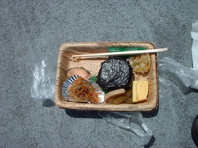 周辺残雪の中で食べる弁当 これ又格別なものでした。