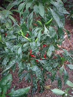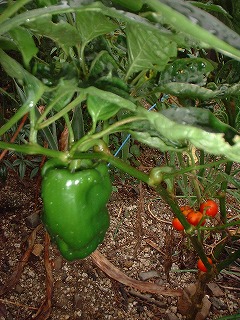 よくみてみると赤いのがある、どうもこれは唐辛子であろう