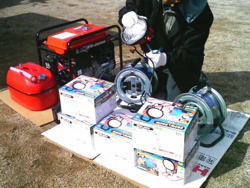 その後、近くのホームセンターへ注文してた備品の発電機・コードリール・投光器・ガソリンタンクを取りに行き、近くのスタンドでガソリン調達・・・・