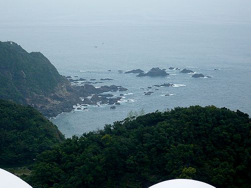 下の写真は国民宿舎の玄関から太平洋を覗いたところです。