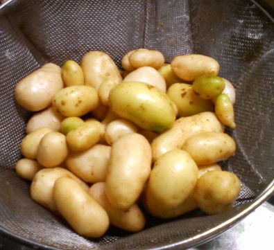 「どんなんかなぁ~~、庭のじゃがいも、少し掘ってみたら」