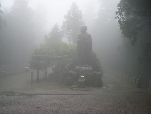 山頂でも一面のガスで数十m先はもとより九州・中国地方も見えない状態・・・・・・・