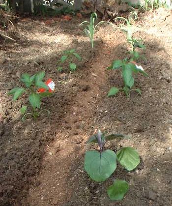 ちっぽけな庭のミニ畑に「トマト」.「なす」.「きゅうり」.「ご-や」.「ピーマン」・「とうもろこし」・・・を植え付けた。