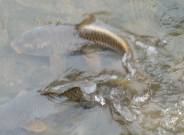 河原を覗いてみると 40~50cmもある魚 5~6匹が・・・・・・・